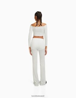Bershka نحيف طقم من سويت شيرت قطيفة وأكمام قصيرة مطبوعة وطقم شورت كريم 804X2049 ملابس