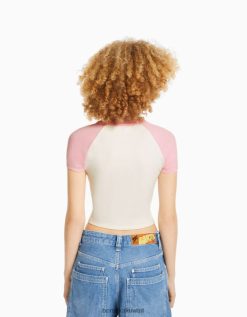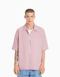 Bershka للجنسين تيشيرت بطبعة نيرفانا وأكمام ريجلان قصيرة لون القرنفل 804X3734 ملابس