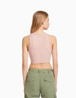 Bershka للجنسين توب محبوك بلا أكمام لون القرنفل 804X3727 ملابس