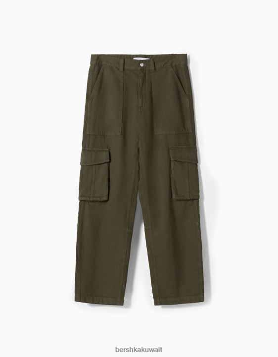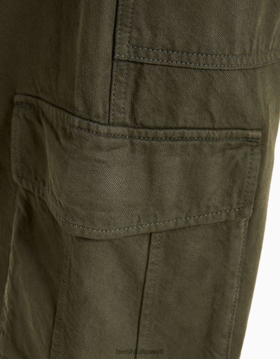Bershka رجال السراويل البضائع القطن واسعة الساق الكاكي 804X3247 ملابس