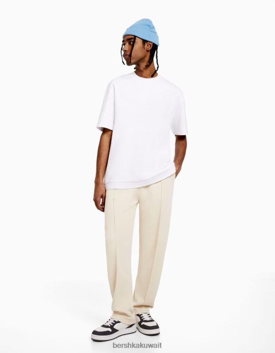 Bershka رجال السراويل واسعة الساق اللون البيج 804X3412 ملابس