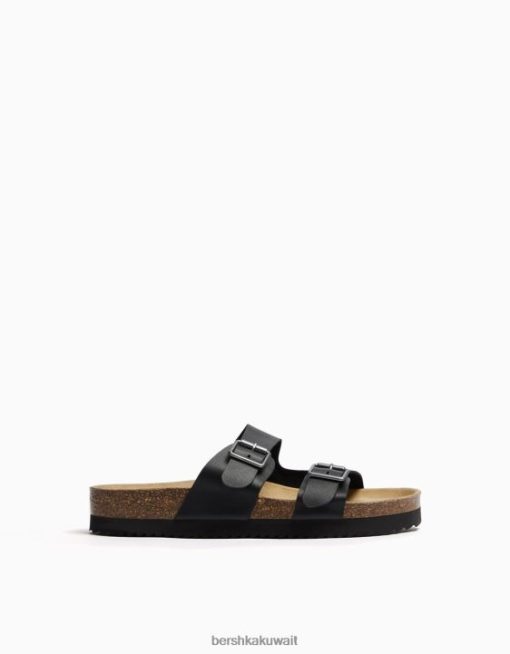 Bershka رجال الصنادل الجلدية مع الابازيم أسود 804X3538 الأحذية