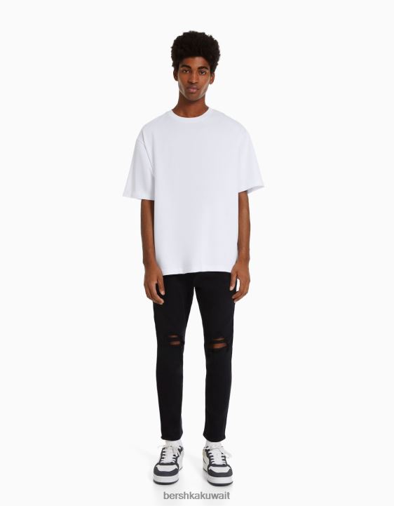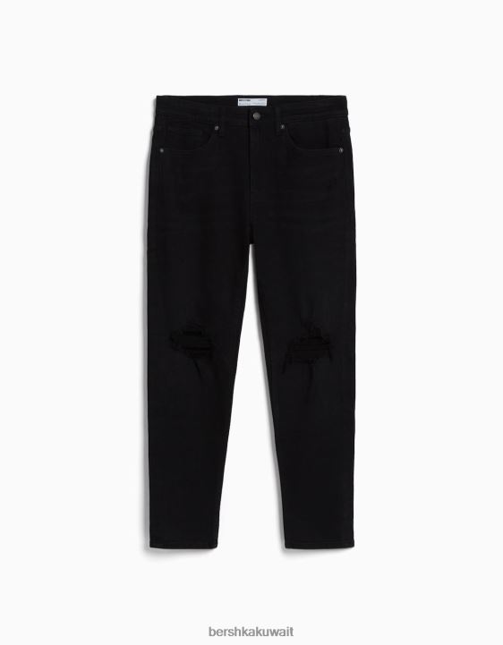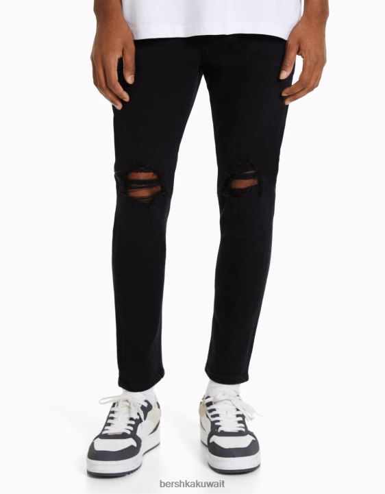 Bershka رجال بنطال جينز ممزق أسود 804X3159 ملابس