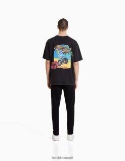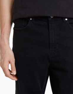 Bershka رجال بنطلون جينز بقصة الجزرة أسود 804X3157 ملابس