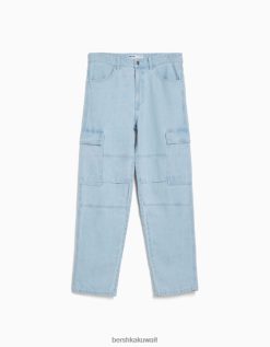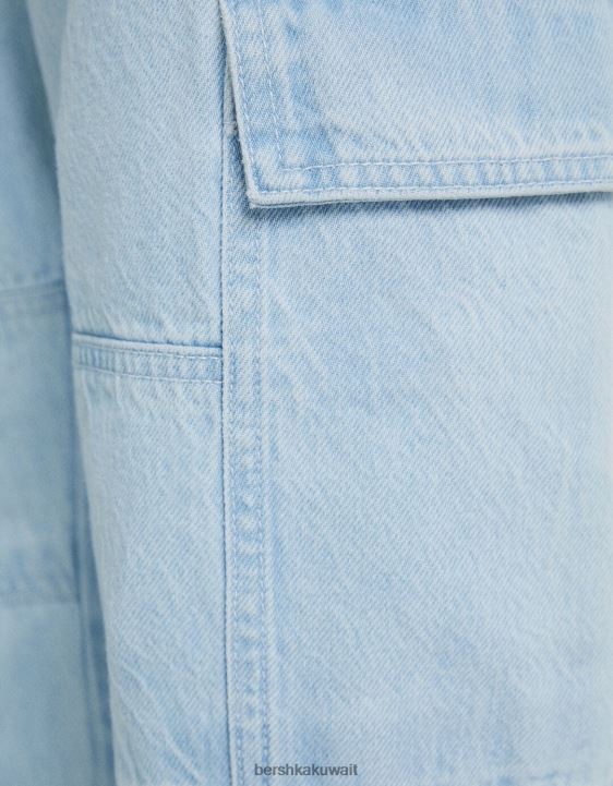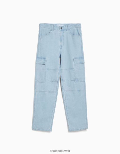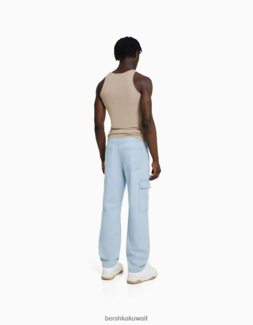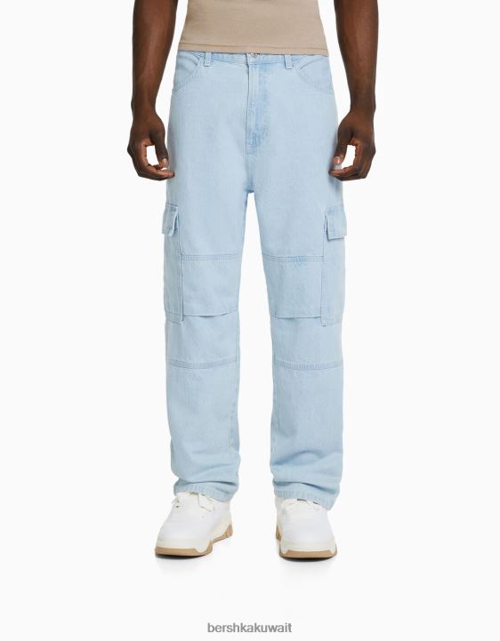 Bershka رجال بنطلون جينز واسع الساق أزرق فاتح 804X3123 ملابس