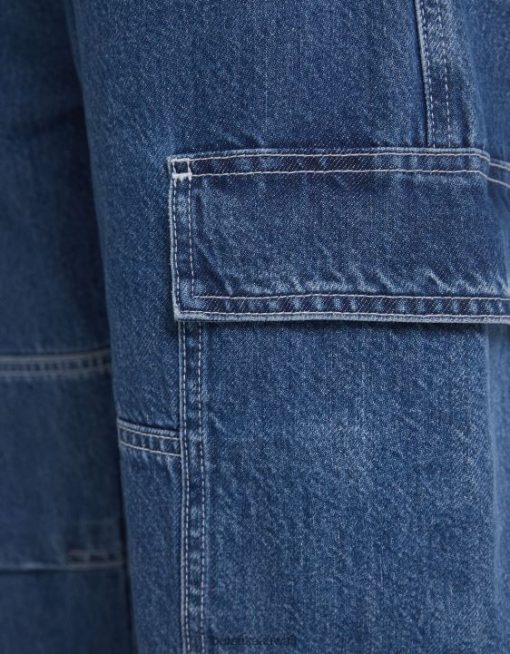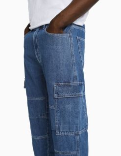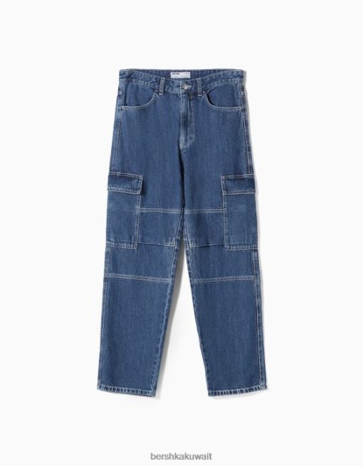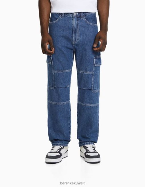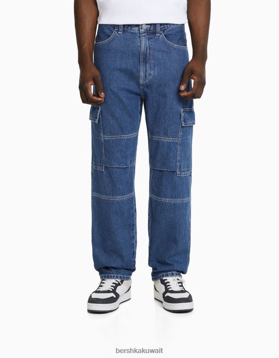 Bershka رجال بنطلون جينز واسع الساق أزرق 804X3119 ملابس