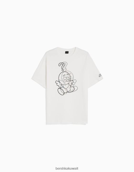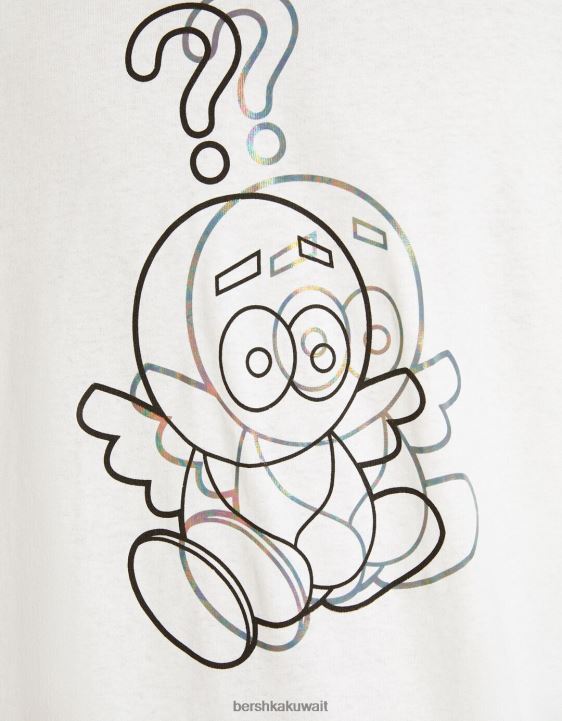 Bershka رجال تيشيرت بأكمام قصيرة بقصة مربعة مع طبعة فويل أبيض 804X2753 ملابس