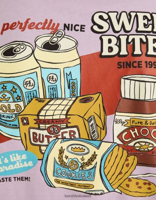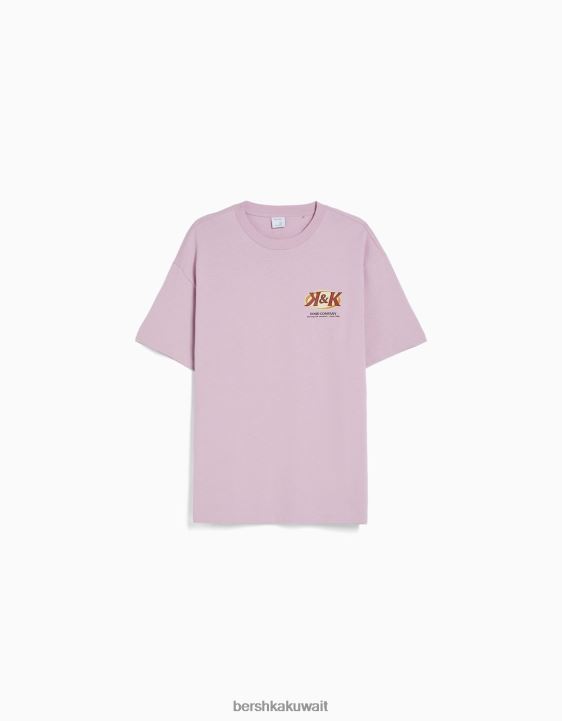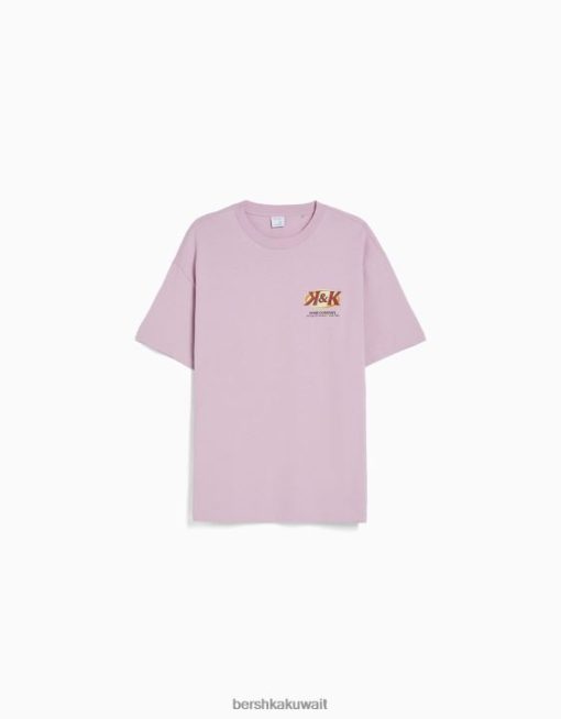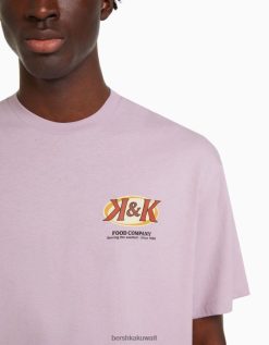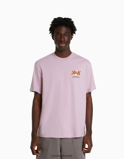 Bershka رجال تيشيرت بأكمام قصيرة مع طبعة البنفسجي 804X2756 ملابس