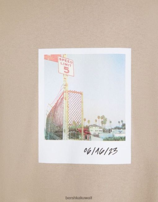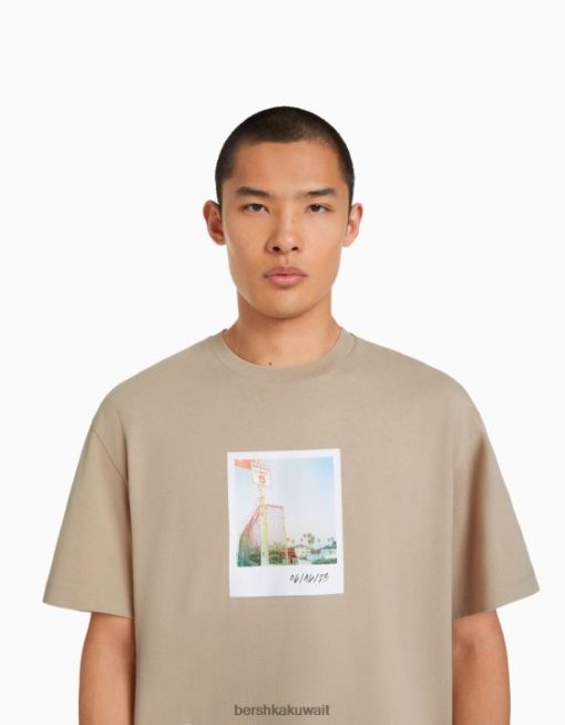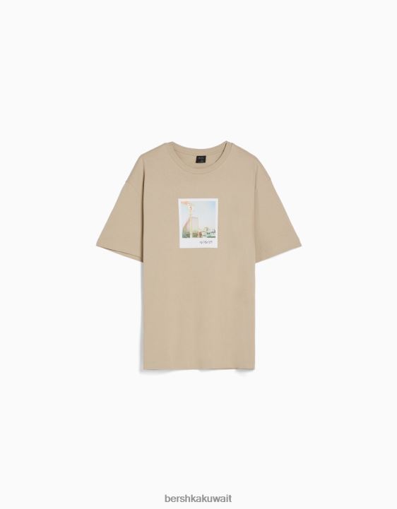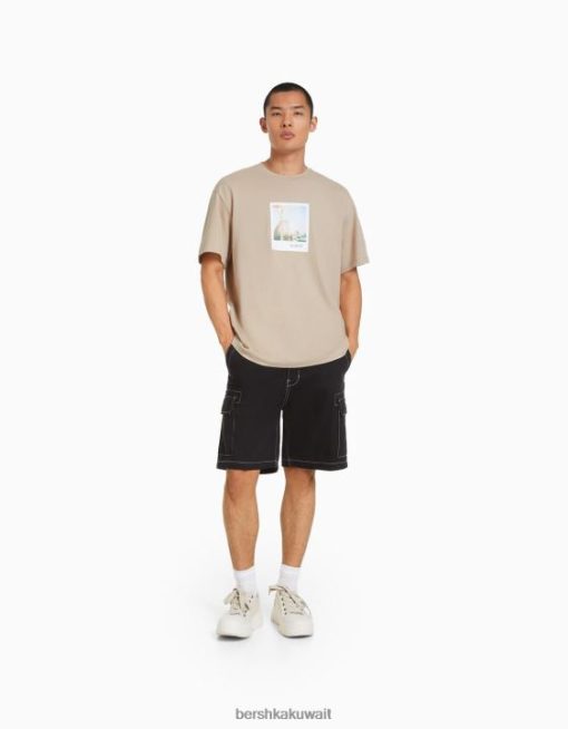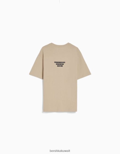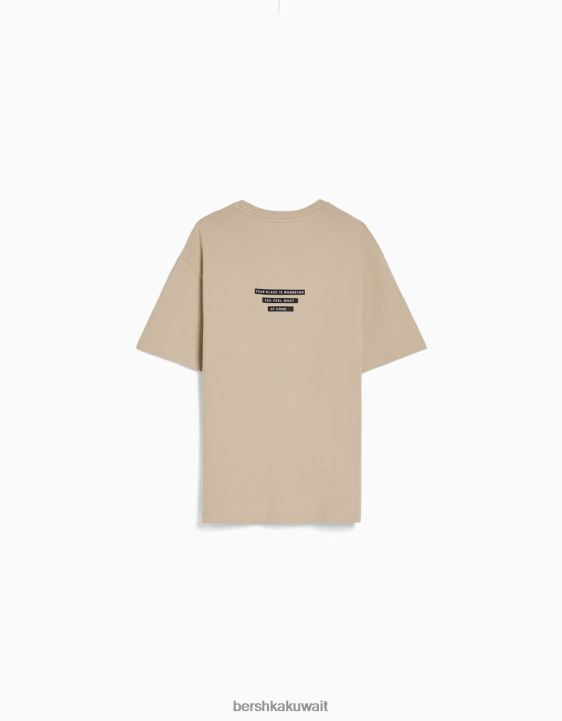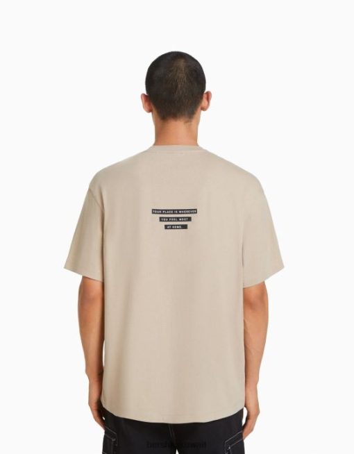 Bershka رجال تيشيرت بأكمام قصيرة مع طبعة جمل 804X2605 ملابس