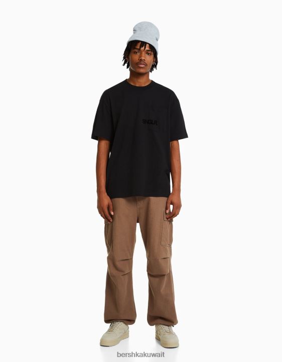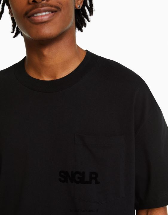Bershka رجال تيشيرت بأكمام قصيرة وجيب أسود 804X2657 ملابس