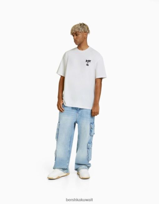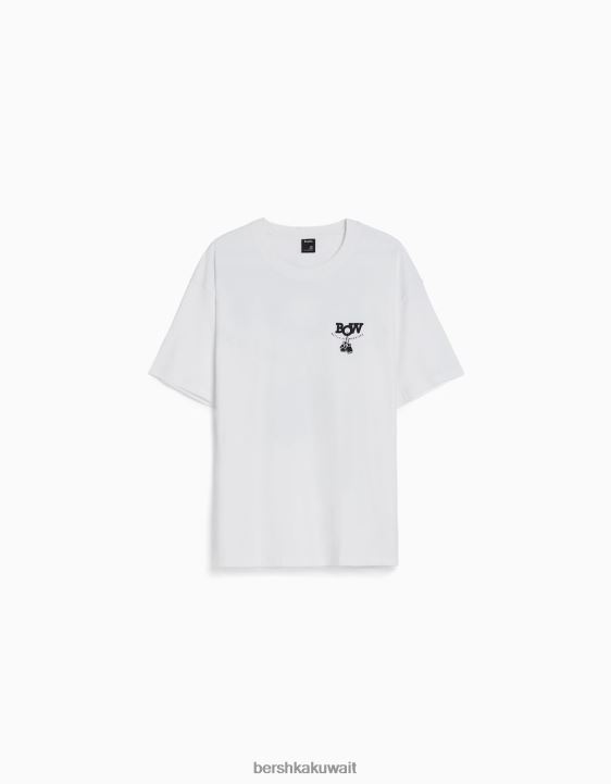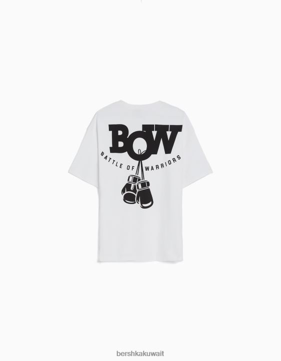 Bershka رجال تيشيرت بأكمام قصيرة وطبعة ملاكمة أبيض 804X2707 ملابس