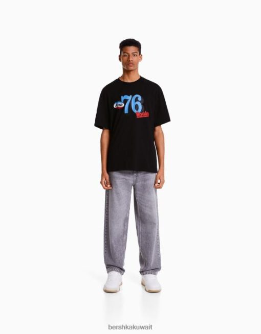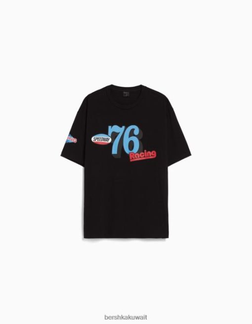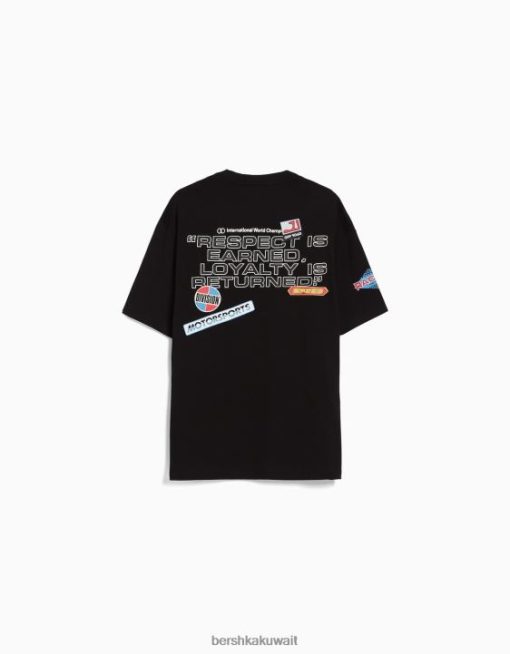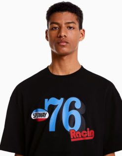 Bershka رجال تيشيرت سباقات بأكمام قصيرة تناسب الصندوق أسود 804X2659 ملابس