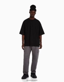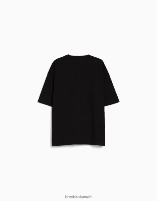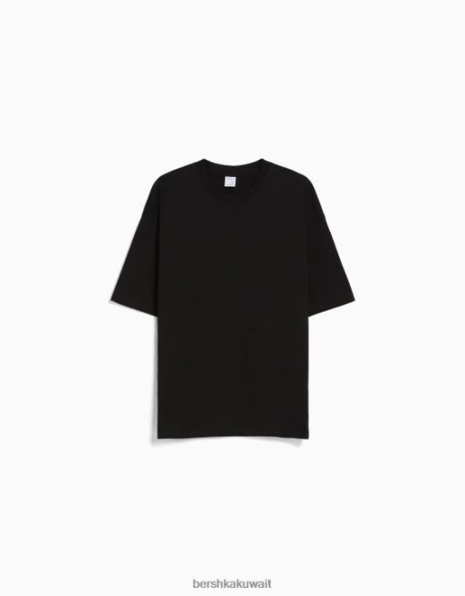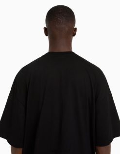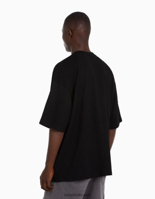 Bershka رجال تيشيرت كبير الحجم بأكمام قصيرة أسود 804X2665 ملابس