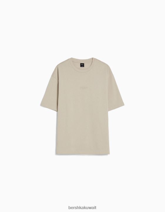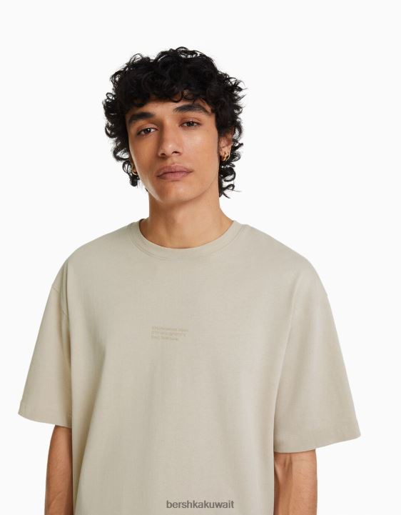 Bershka رجال تيشيرت كبير الحجم مطبوع بأكمام قصيرة جمل 804X2684 ملابس