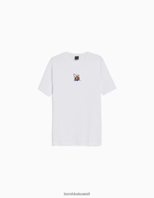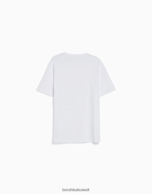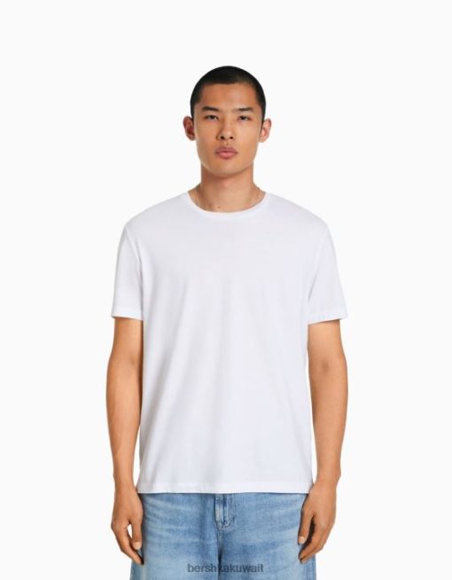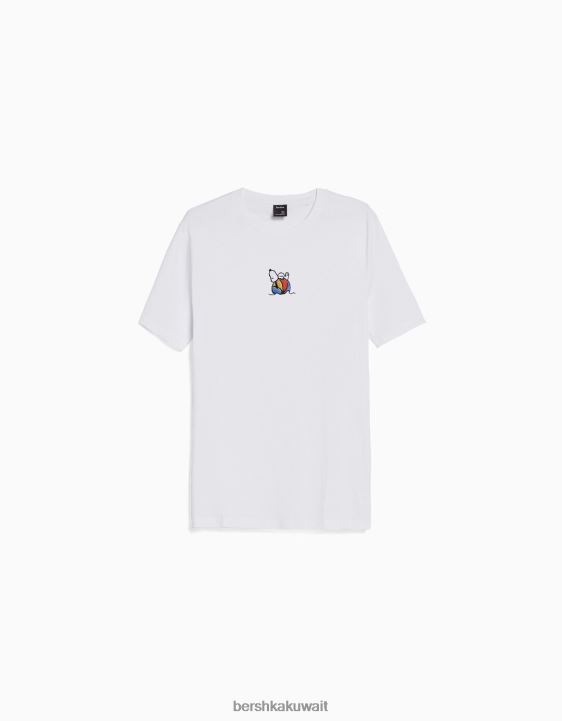 Bershka رجال تي شيرت بأكمام قصيرة أبيض 804X3449 ملابس