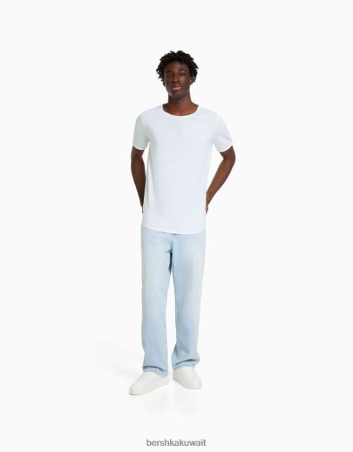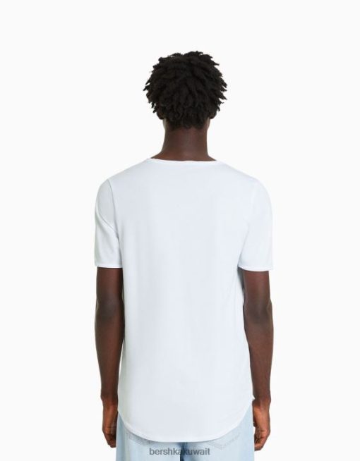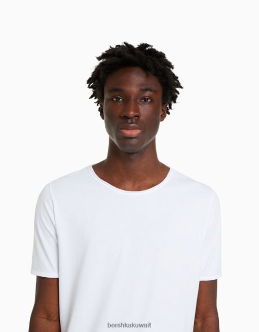 Bershka رجال تي شيرت بأكمام قصيرة قابلة للتمدد أبيض 804X2846 ملابس