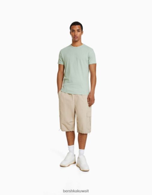 Bershka رجال تي شيرت بأكمام قصيرة مضلع متناسق العضلات أخضر 804X2736 ملابس