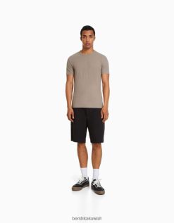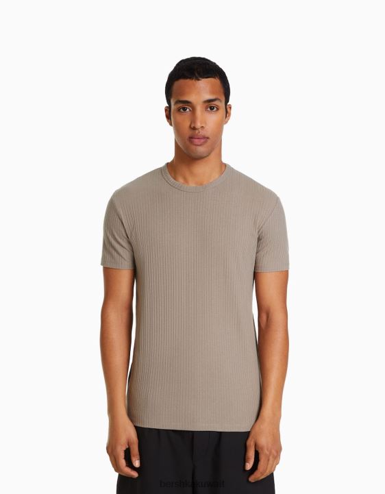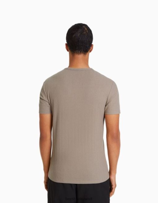 Bershka رجال تي شيرت بأكمام قصيرة مضلع متناسق العضلات رمادي 804X2737 ملابس
