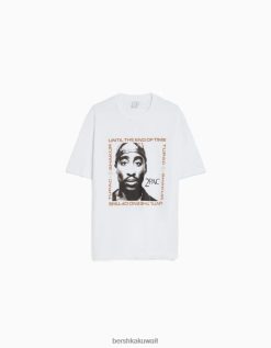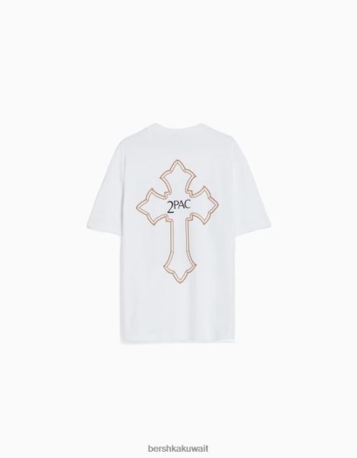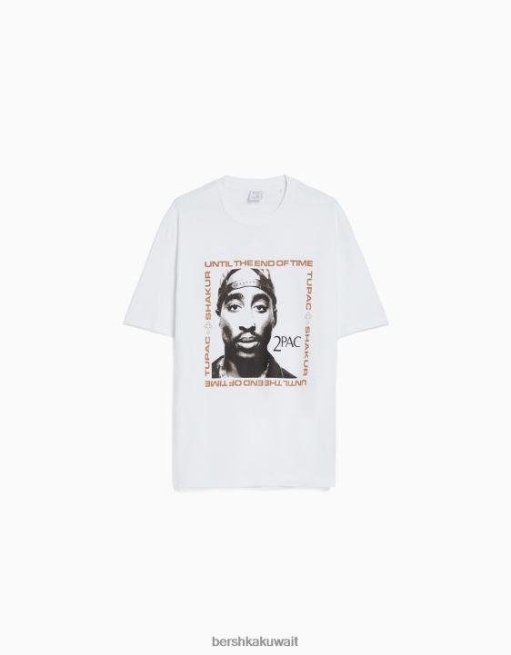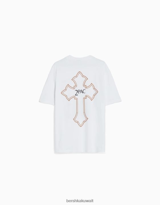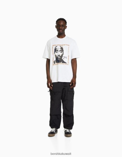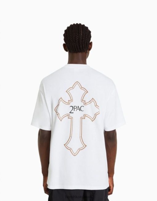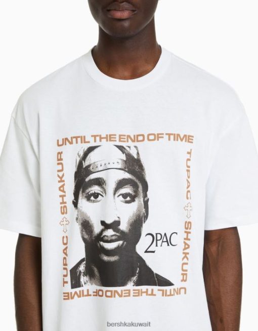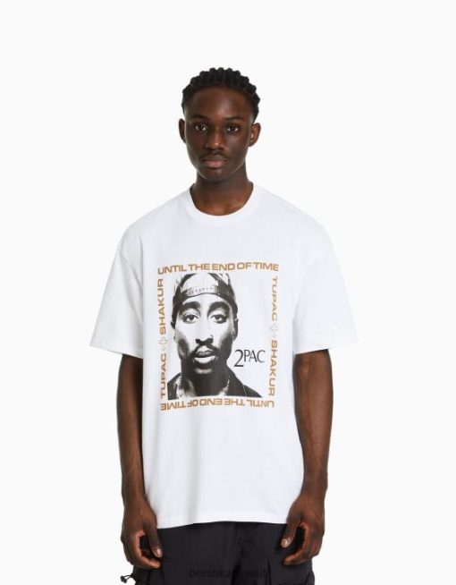 Bershka رجال تي شيرت بأكمام قصيرة وطبعة توباك أبيض 804X2724 ملابس