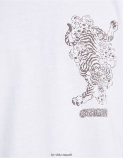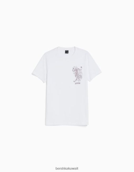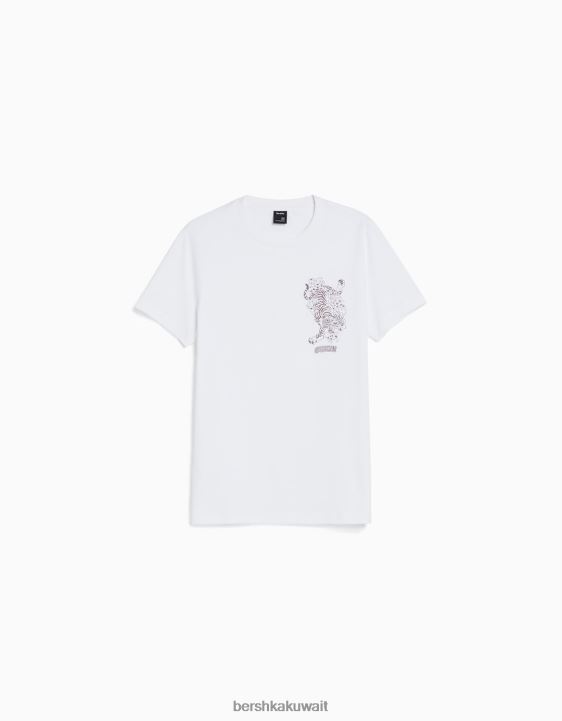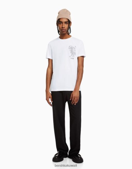 Bershka رجال تي شيرت بأكمام قصيرة وطبعة عادية أبيض 804X2727 ملابس