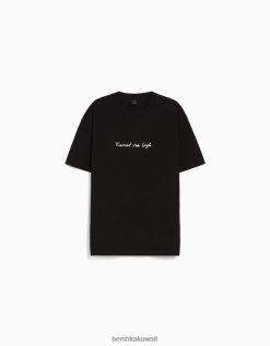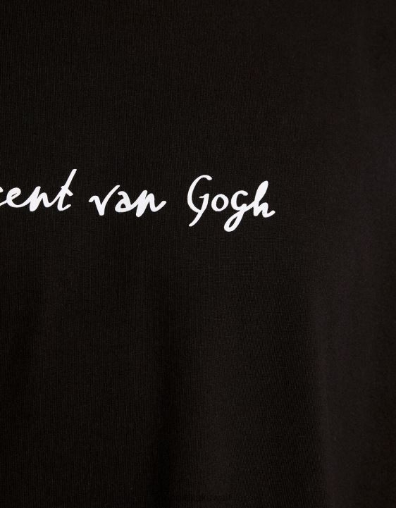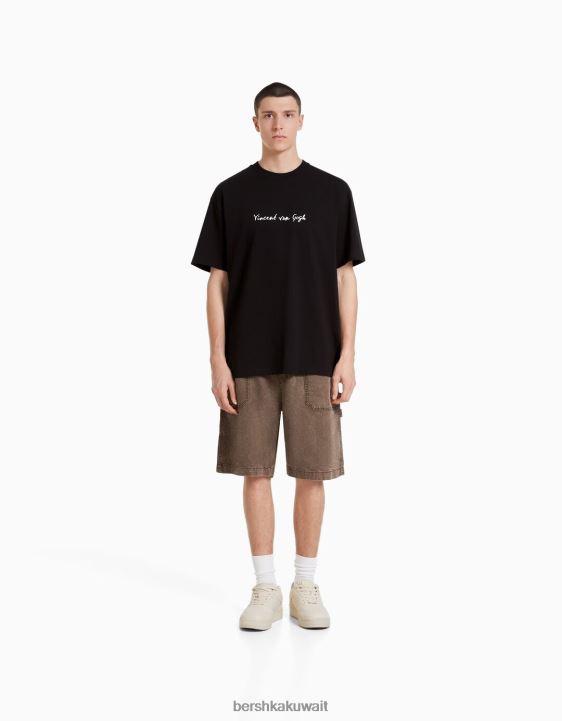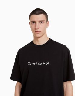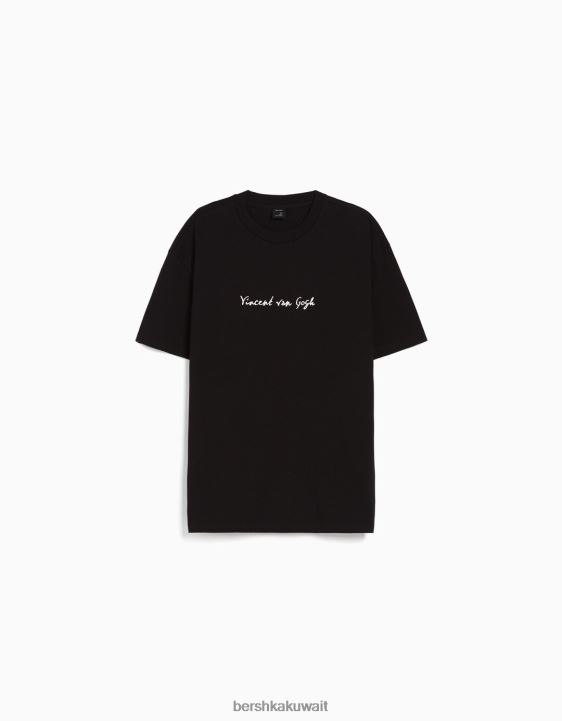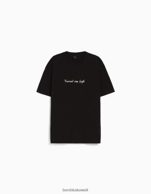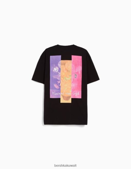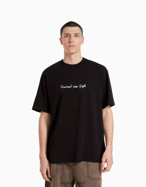 Bershka رجال تي شيرت بأكمام قصيرة وطبعة فان جوخ أسود 804X2626 ملابس