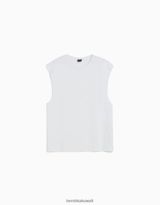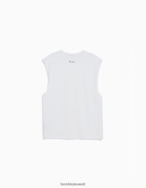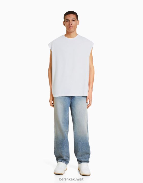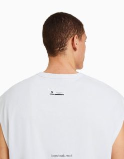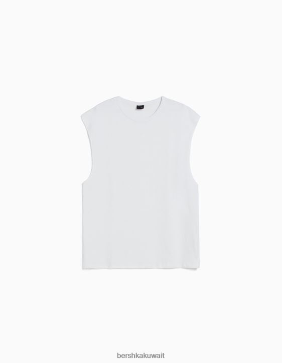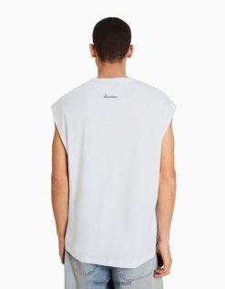 Bershka رجال تي شيرت بدون أكمام أبيض 804X2812 ملابس