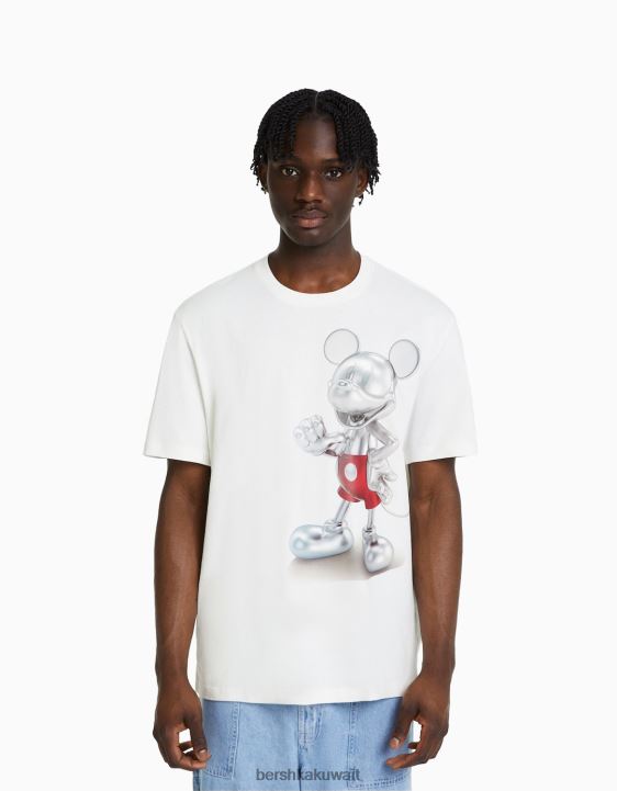 Bershka رجال تي شيرت بطبعة ديزني أبيض 804X2694 ملابس