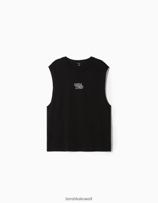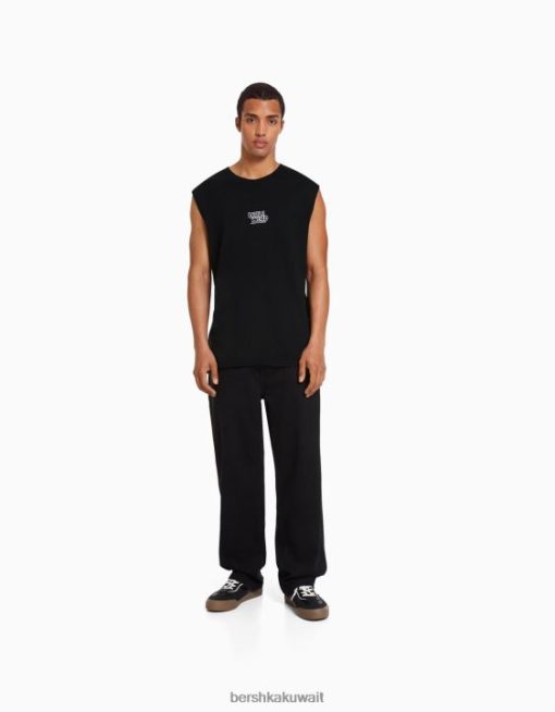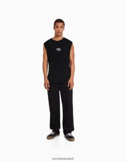 Bershka رجال تي شيرت بلا أكمام مناسب بنمط البناء أسود 804X2783 ملابس