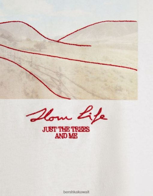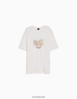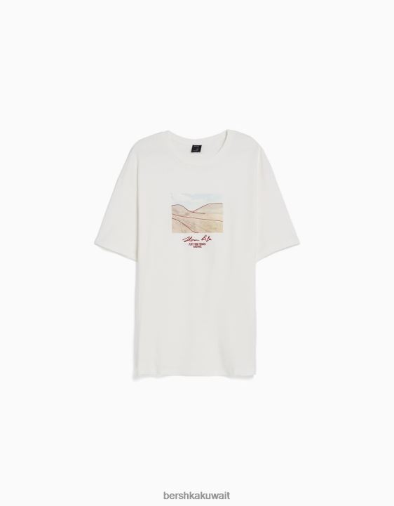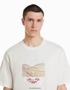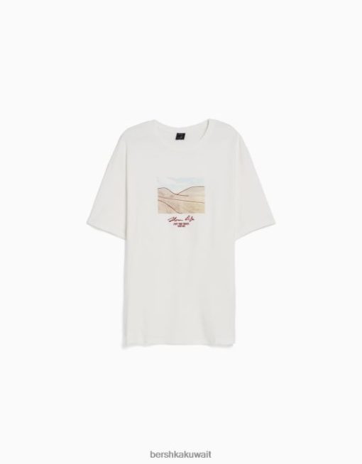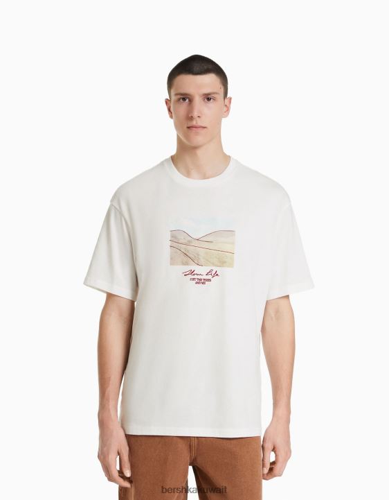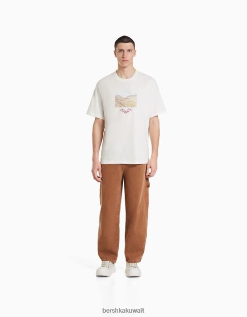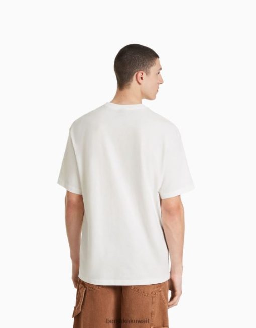 Bershka رجال تي شيرت مطبوع بأكمام قصيرة أبيض 804X2832 ملابس