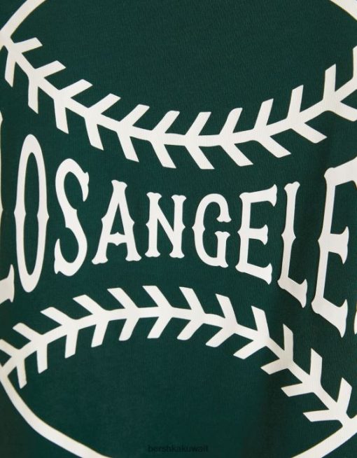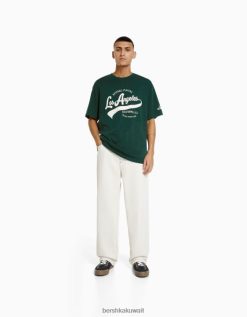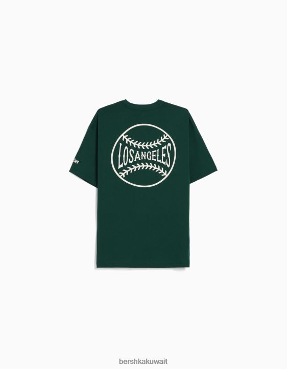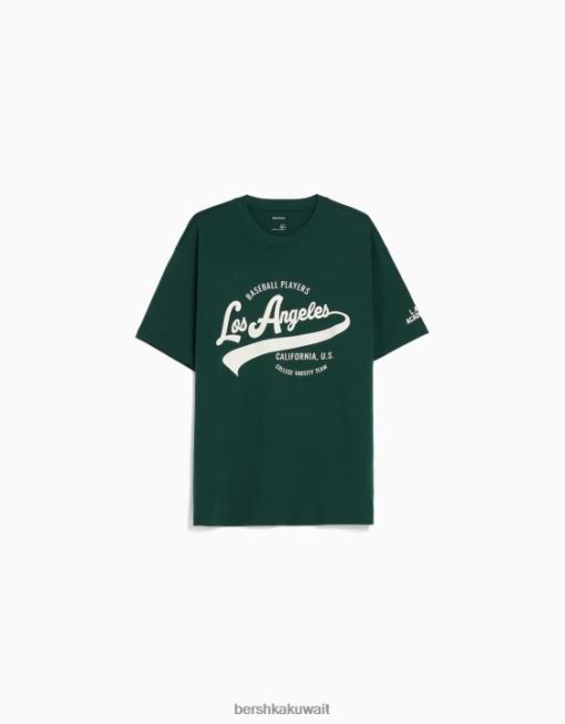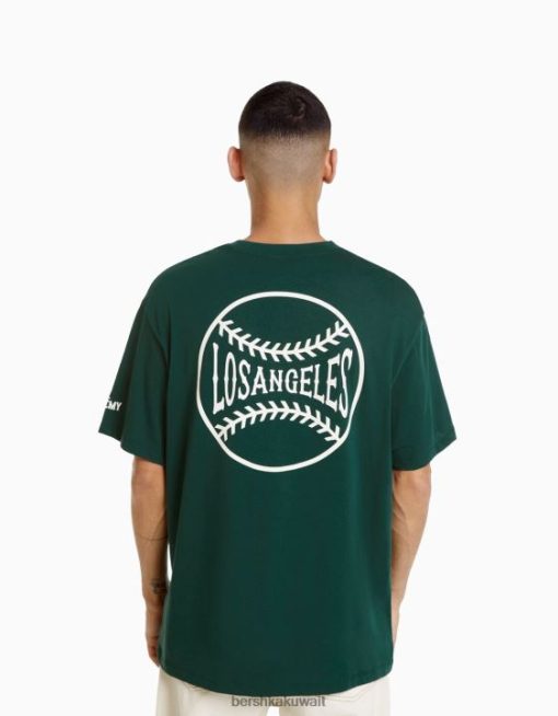Bershka رجال تي شيرت مطبوع بأكمام قصيرة أخضر 804X2842 ملابس