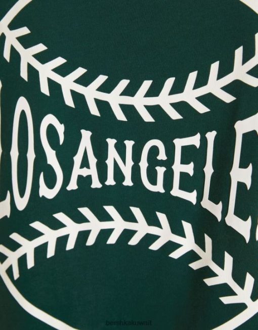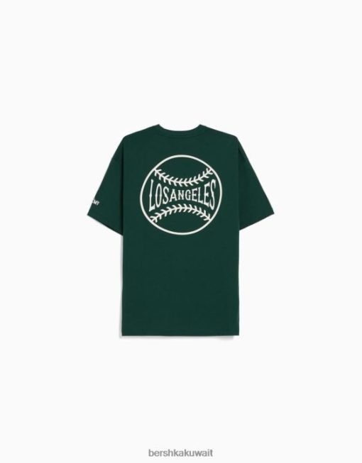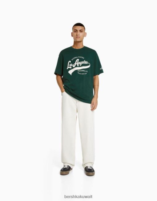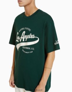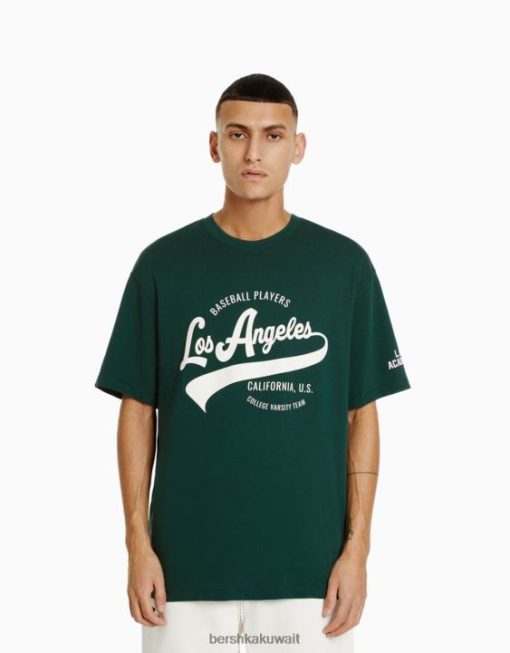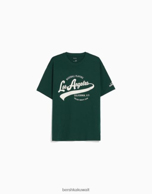 Bershka رجال تي شيرت مطبوع بأكمام قصيرة أخضر 804X2843 ملابس