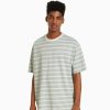 Bershka رجال تي شيرت مطبوع بأكمام قصيرة أزرق 804X2612 ملابس