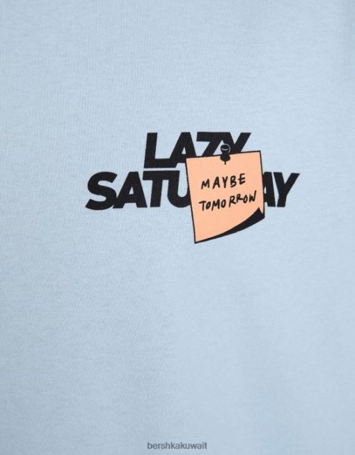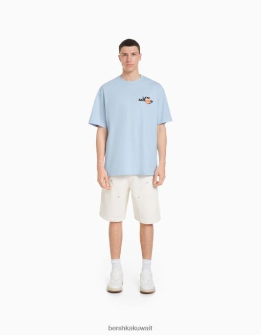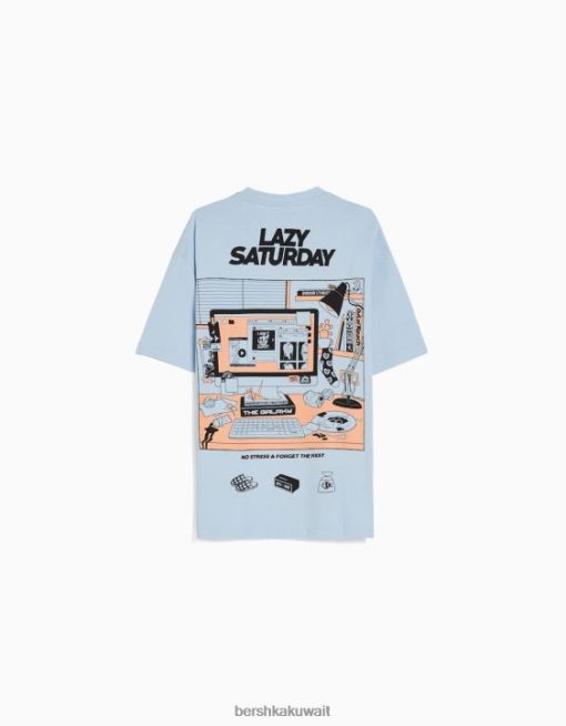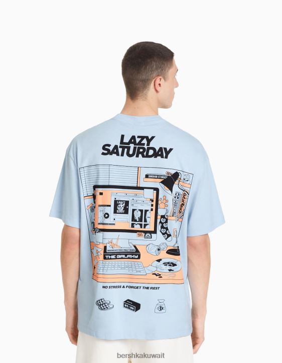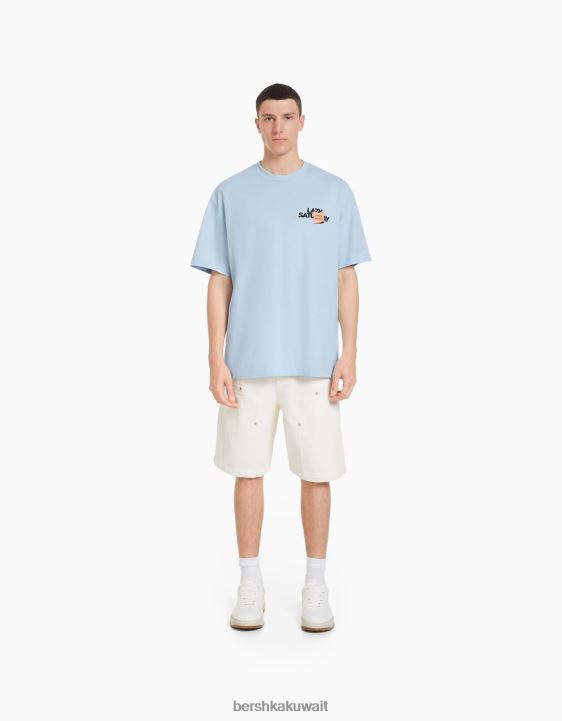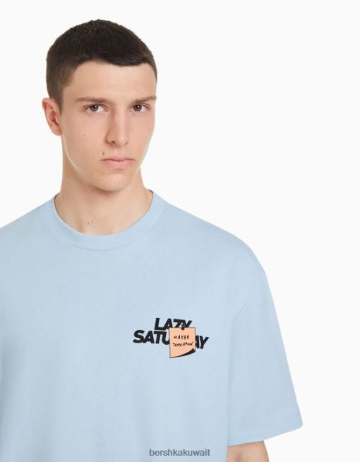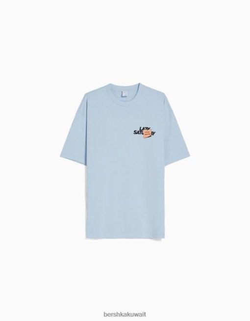 Bershka رجال تي شيرت مطبوع بأكمام قصيرة أزرق فاتح 804X2702 ملابس