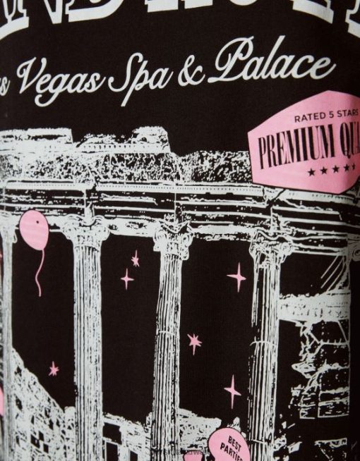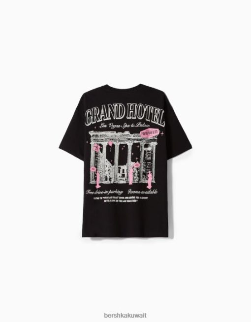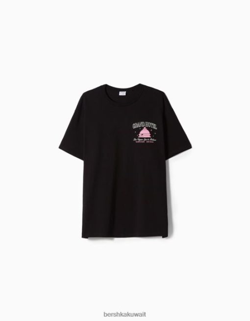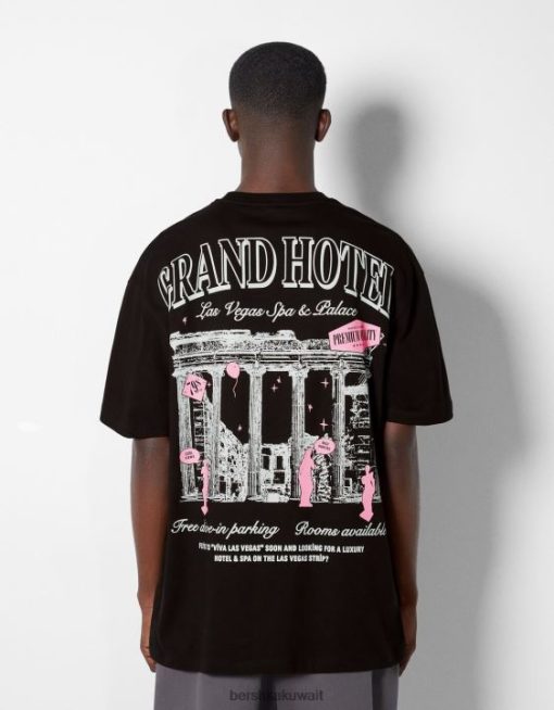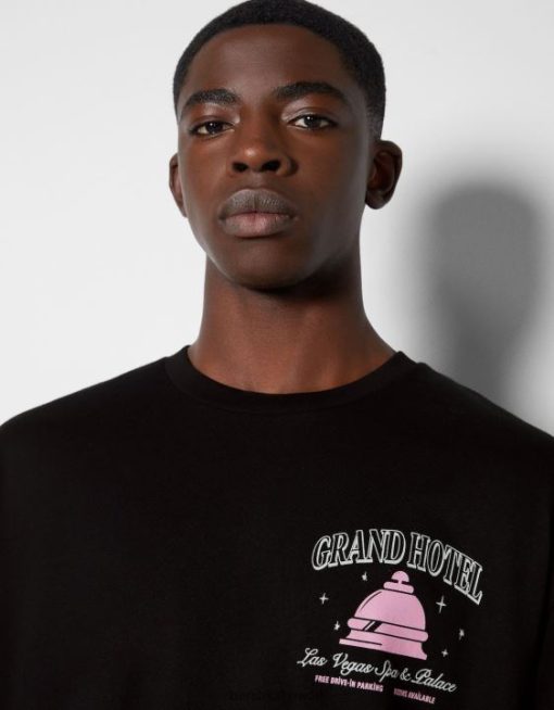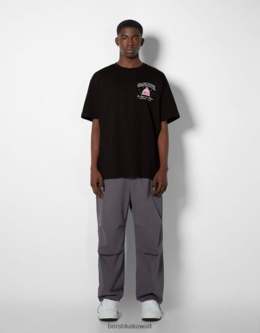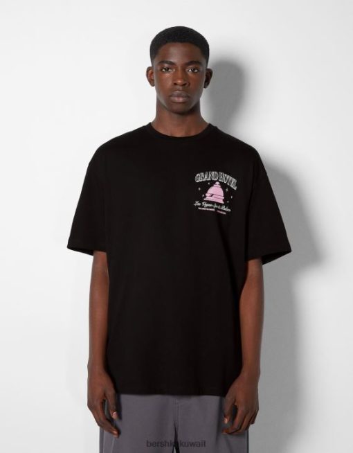 Bershka رجال تي شيرت مطبوع بأكمام قصيرة أسود 804X2851 ملابس
