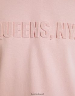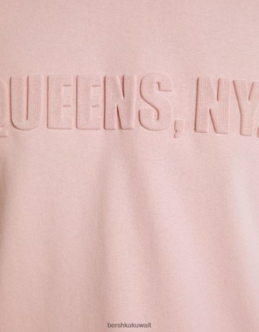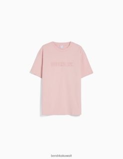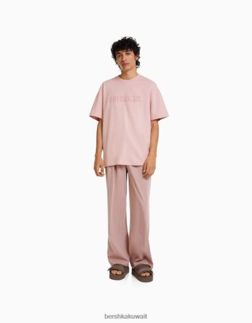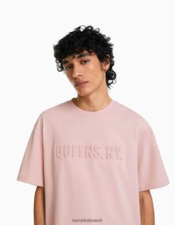 Bershka رجال تي شيرت مطبوع بأكمام قصيرة لون القرنفل 804X2709 ملابس