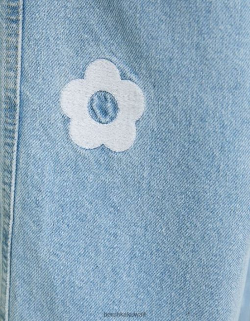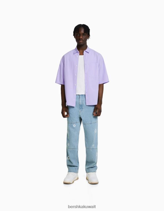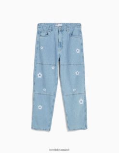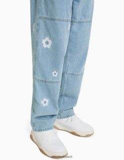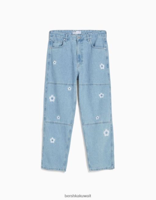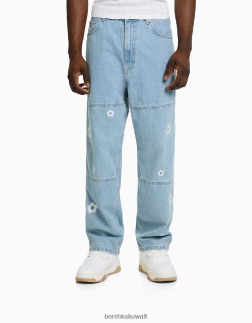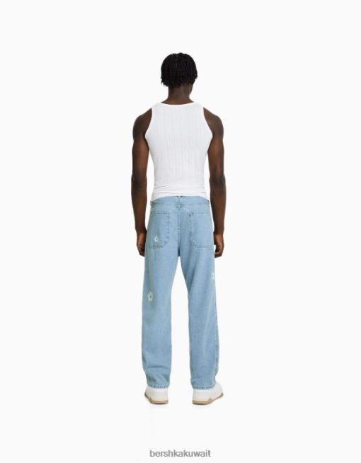 Bershka رجال جينز نجار فضفاض مطرز أزرق فاتح 804X3143 ملابس