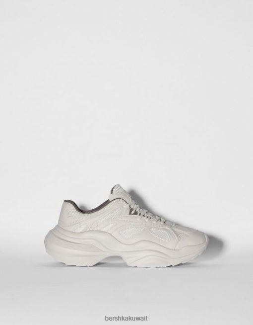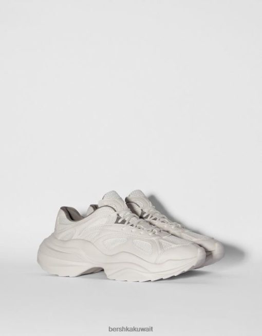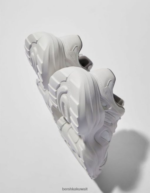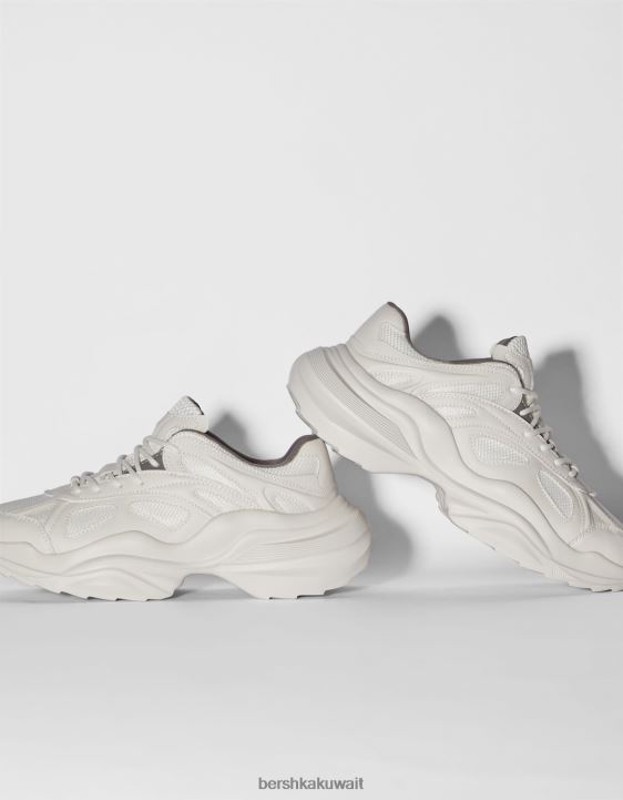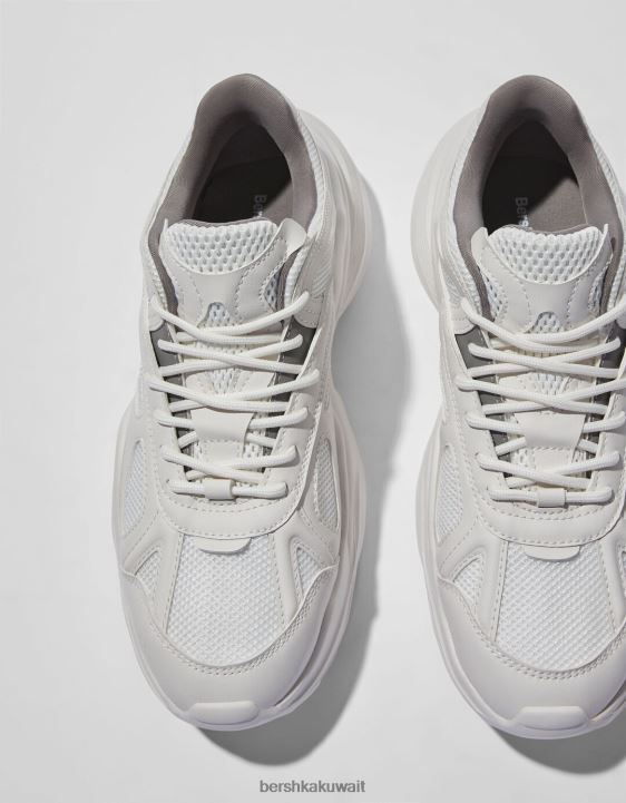 Bershka رجال حذاء رياضي مكتنزة بشبكة متباينة اللون أبيض 804X3511 الأحذية