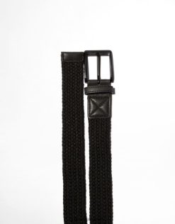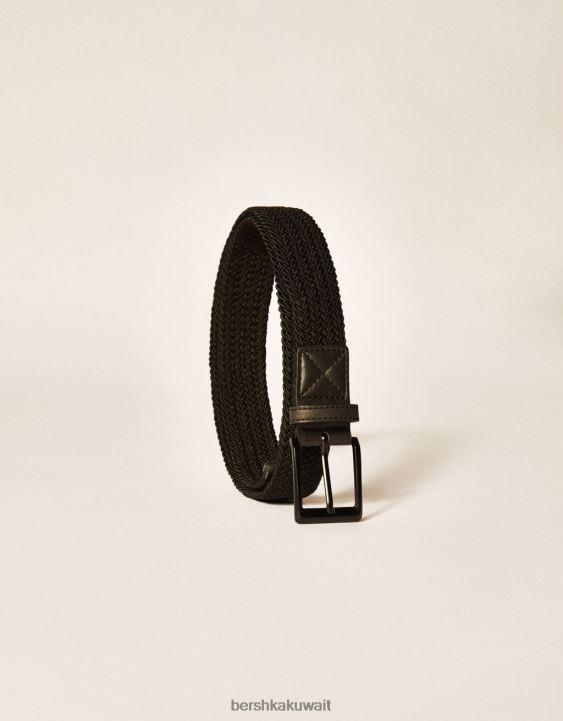 Bershka رجال حزام جلد صناعي مضفر أسود 804X3627 مُكَمِّلات