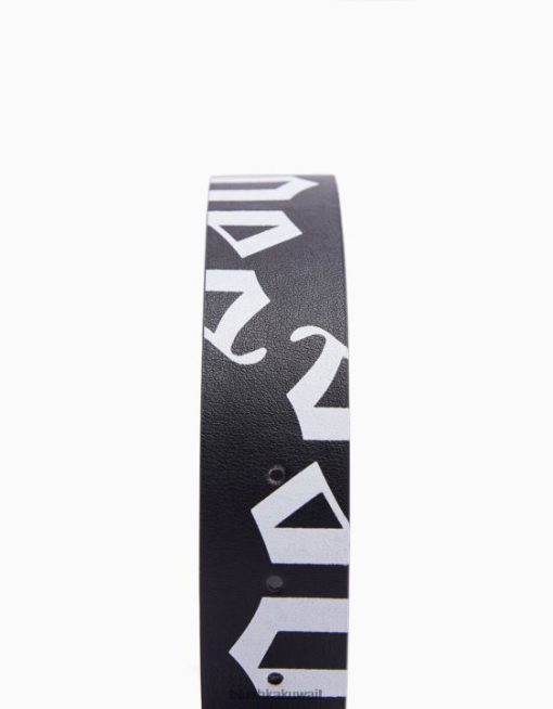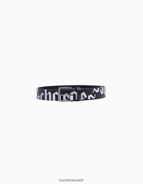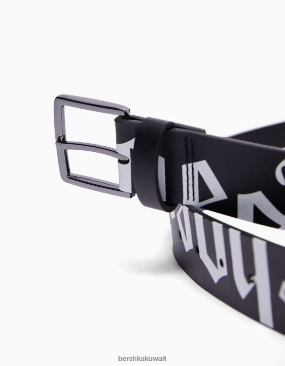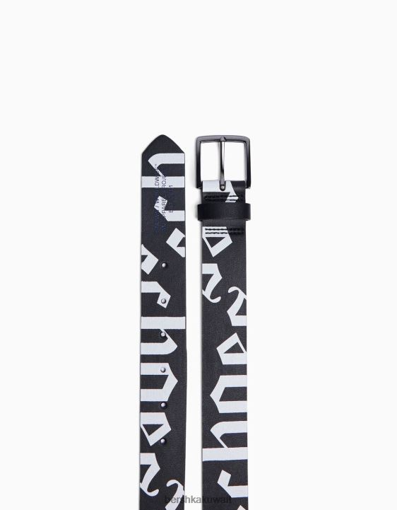 Bershka رجال حزام مطبوع أسود 804X3641 مُكَمِّلات
