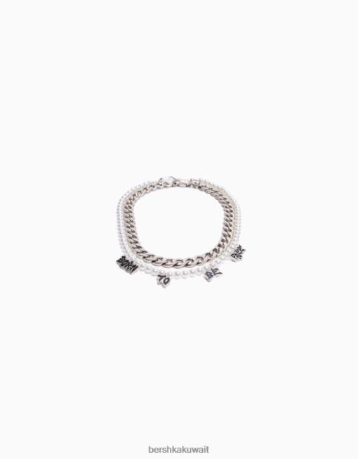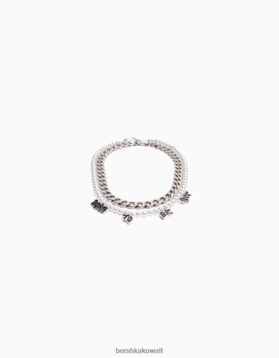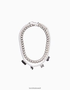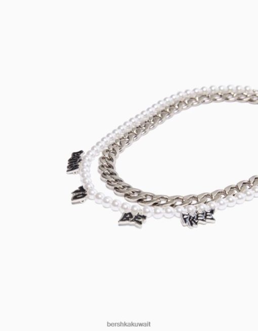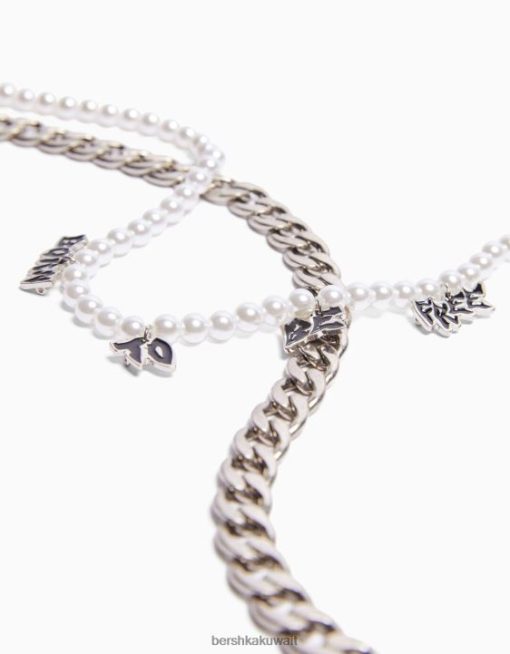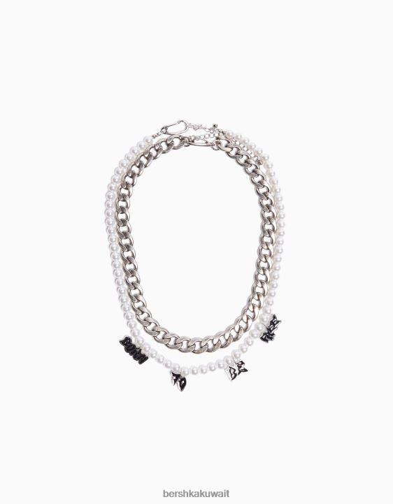 Bershka رجال حزمة من 2 حبة لؤلؤ صناعي وقلاد شعار فضة 804X3665 مُكَمِّلات