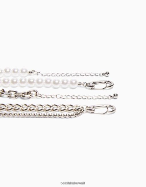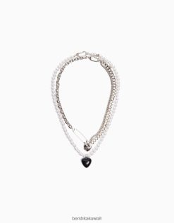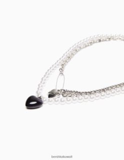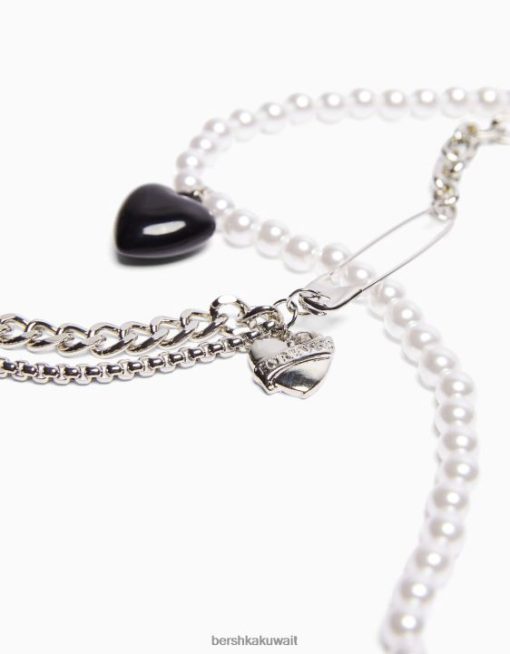 Bershka رجال حزمة 2 عقد قلب لؤلؤ صناعي فضة 804X3679 مُكَمِّلات