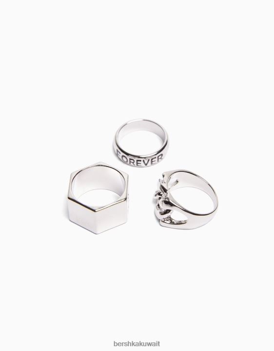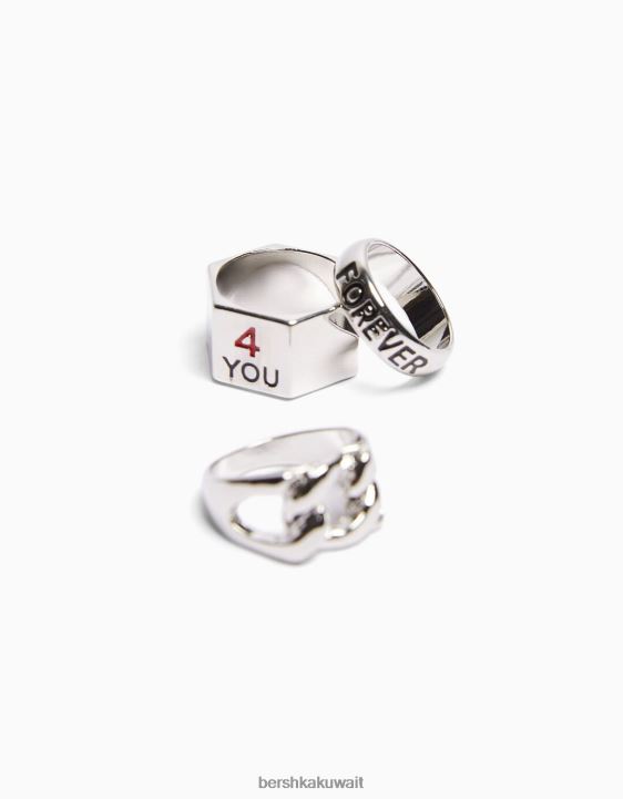 Bershka رجال حزمة 3 خواتم الحب فضة 804X3646 مُكَمِّلات