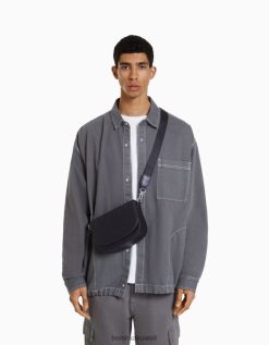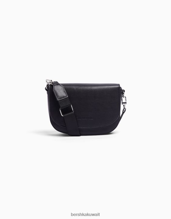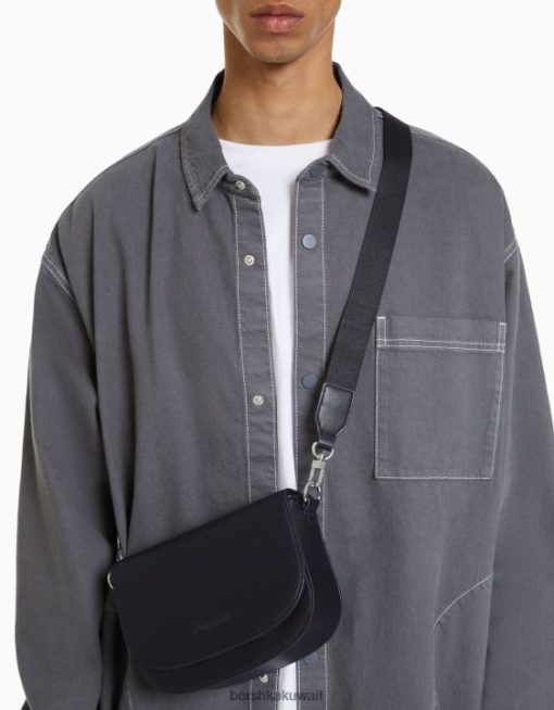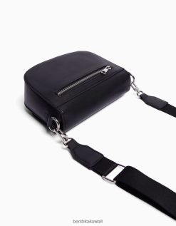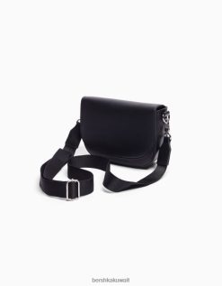 Bershka رجال حقيبة كروس مع رفرف أسود 804X3604 مُكَمِّلات