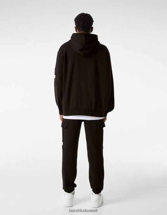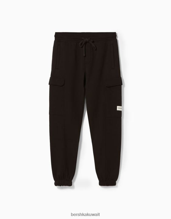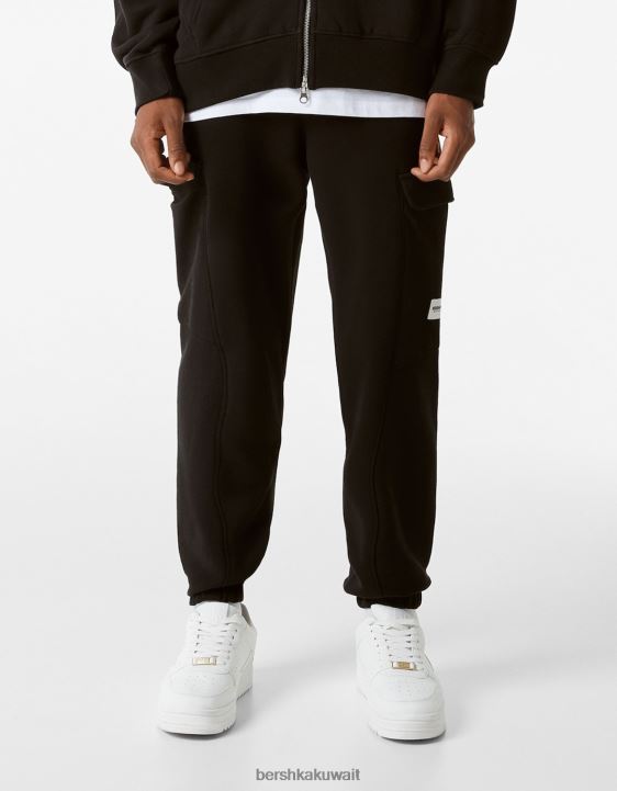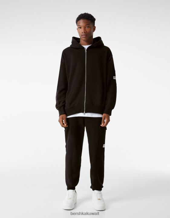 Bershka رجال ركض البضائع القطيفة أسود 804X3242 ملابس