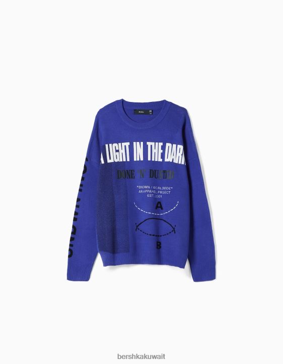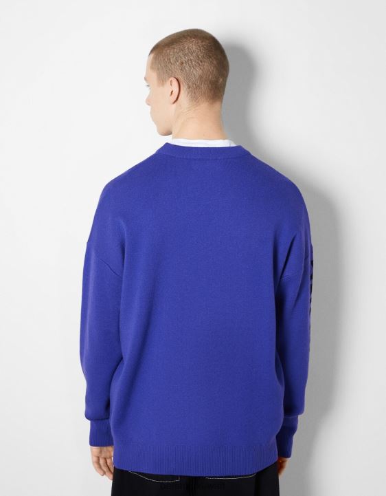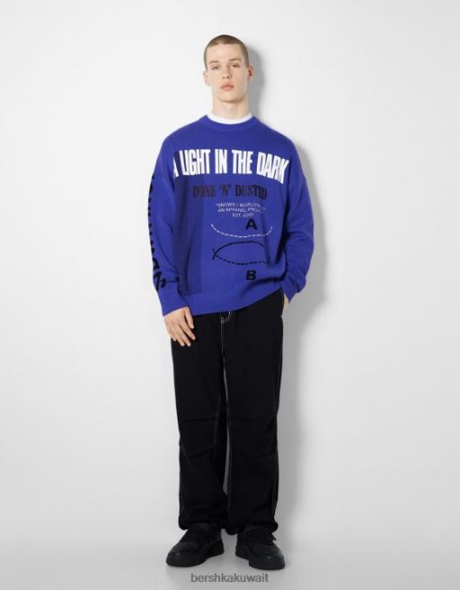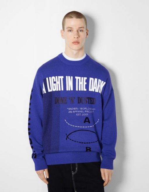 Bershka رجال سترة طويلة الأكمام المطبوعة أزرق 804X3006 ملابس