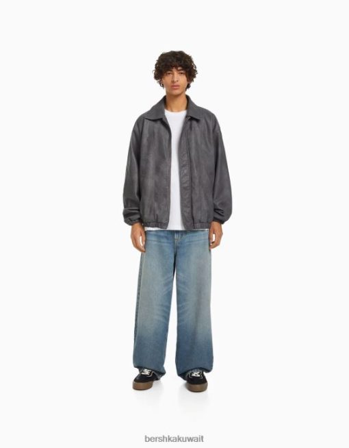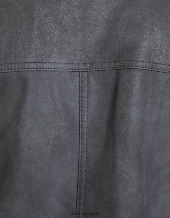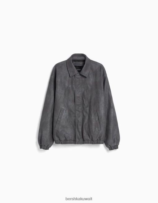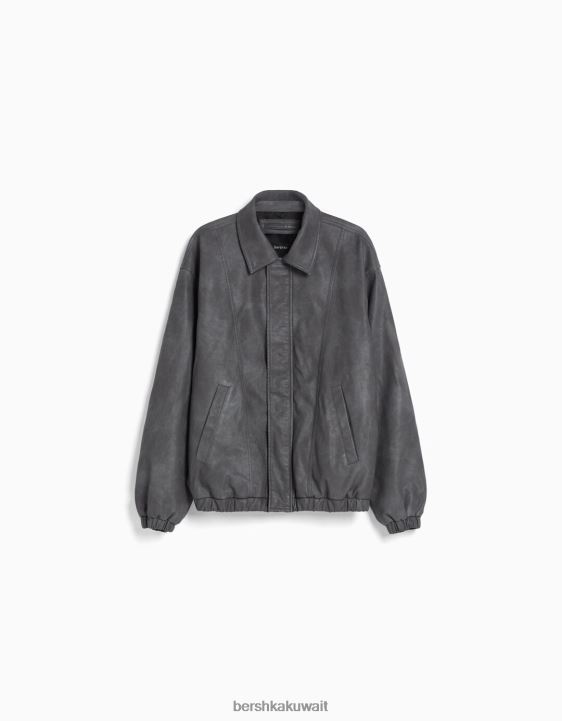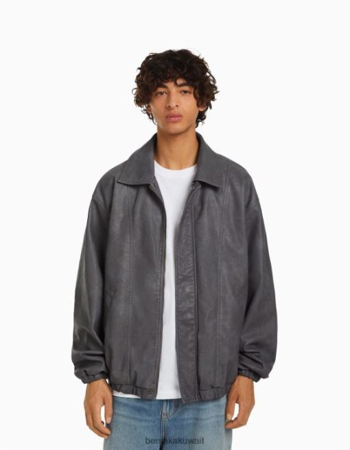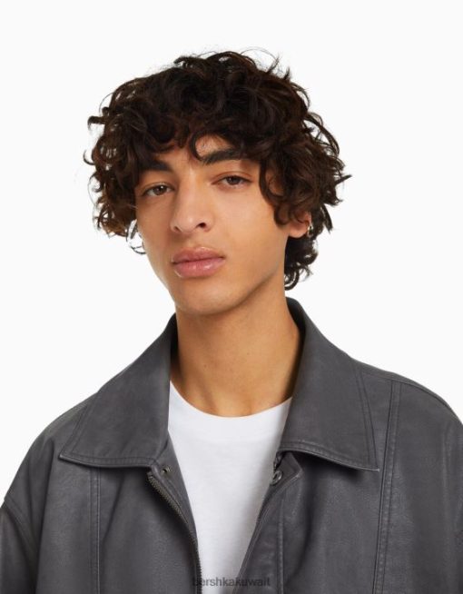 Bershka رجال سترة كبيرة الحجم من الجلد الصناعي رمادي 804X3082 ملابس