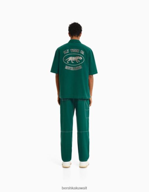 Bershka رجال سروال نجار قطني أخضر 804X3235 ملابس