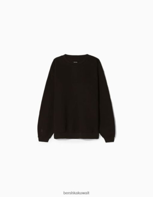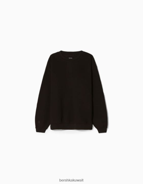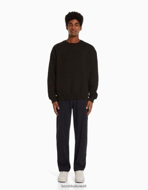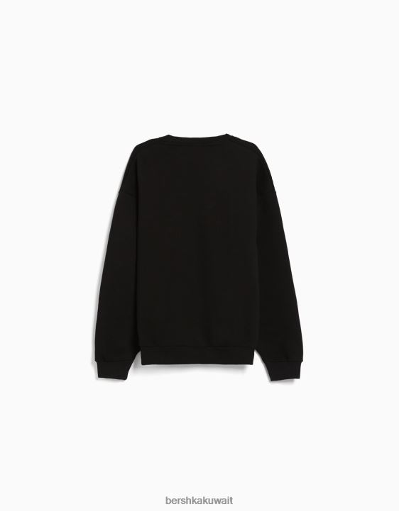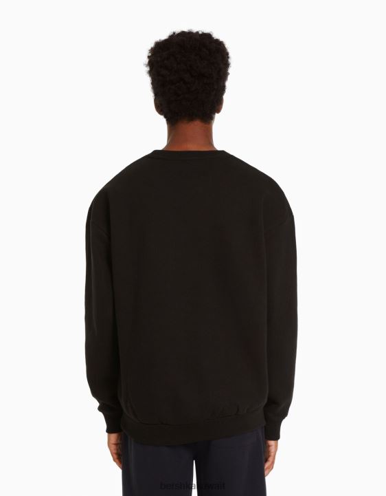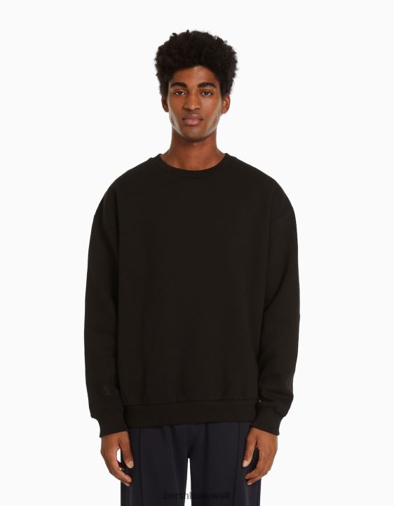 Bershka رجال سويت شيرت كبير الحجم برقبة مستديرة أسود 804X2994 ملابس
