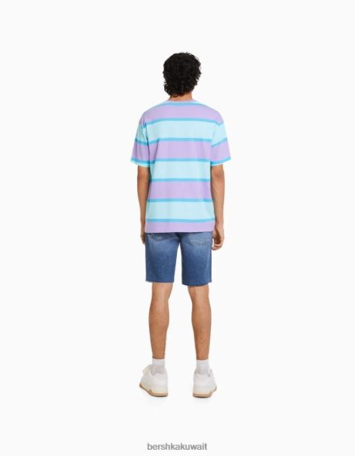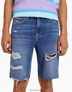 Bershka رجال شورت برمودا جينز ممزق متناسق أزرق 804X3302 ملابس