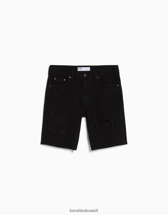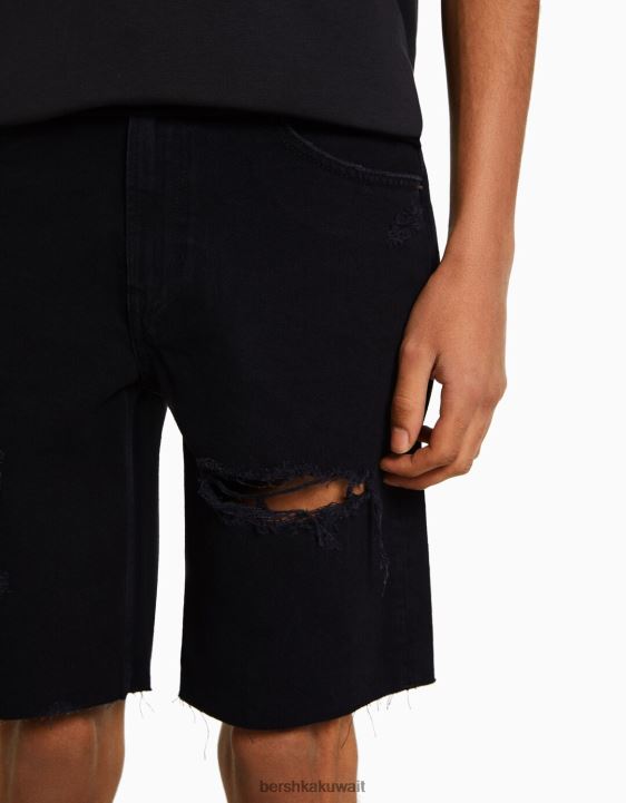 Bershka رجال شورت برمودا جينز ممزق متناسق أسود 804X3303 ملابس